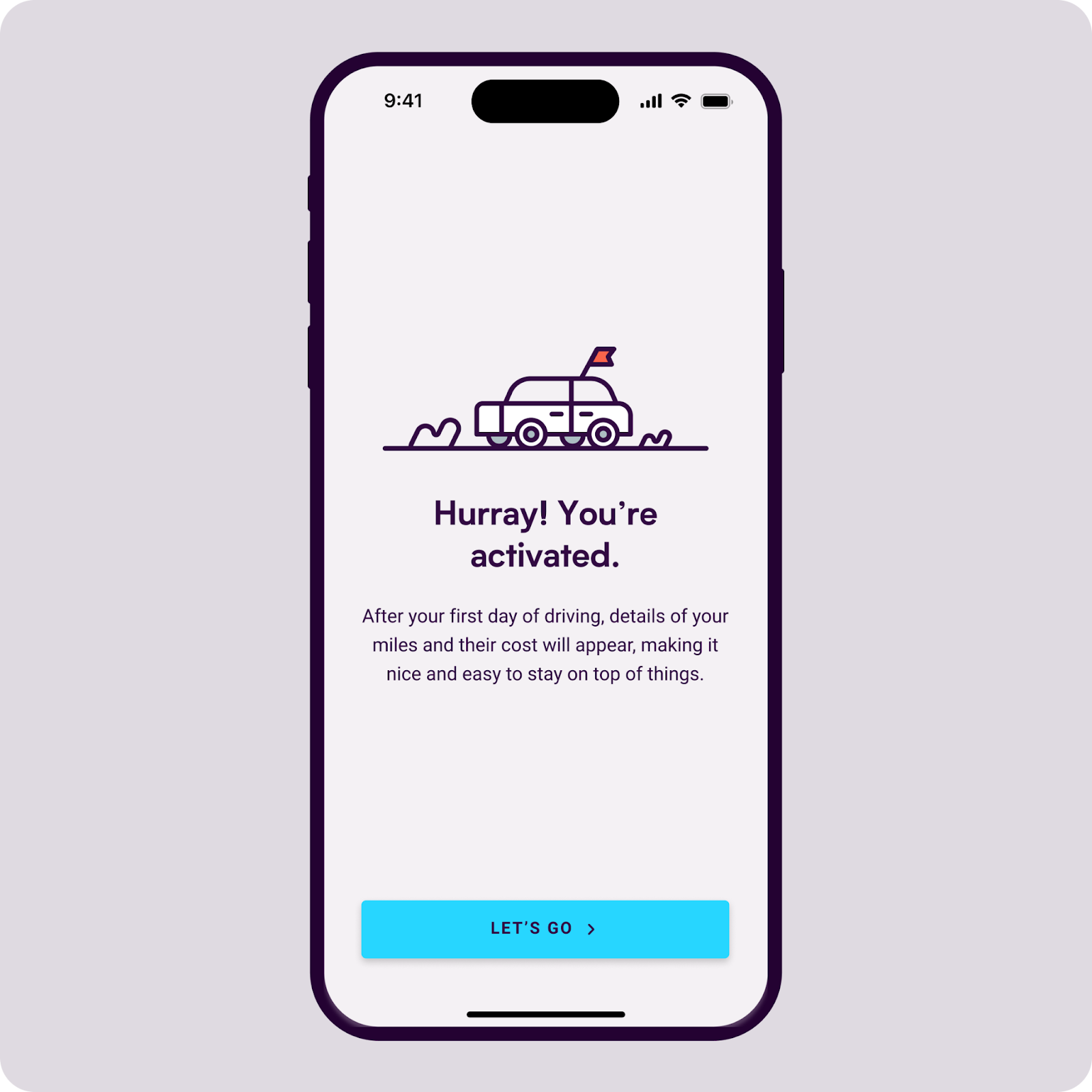 You’ve connected your car. Excellent work. Your policy is now active, and we’ll receive daily updates on your mileage. (If you’re still waiting to see this screen, hang tight. It may take a few seconds for the connection to activate.)