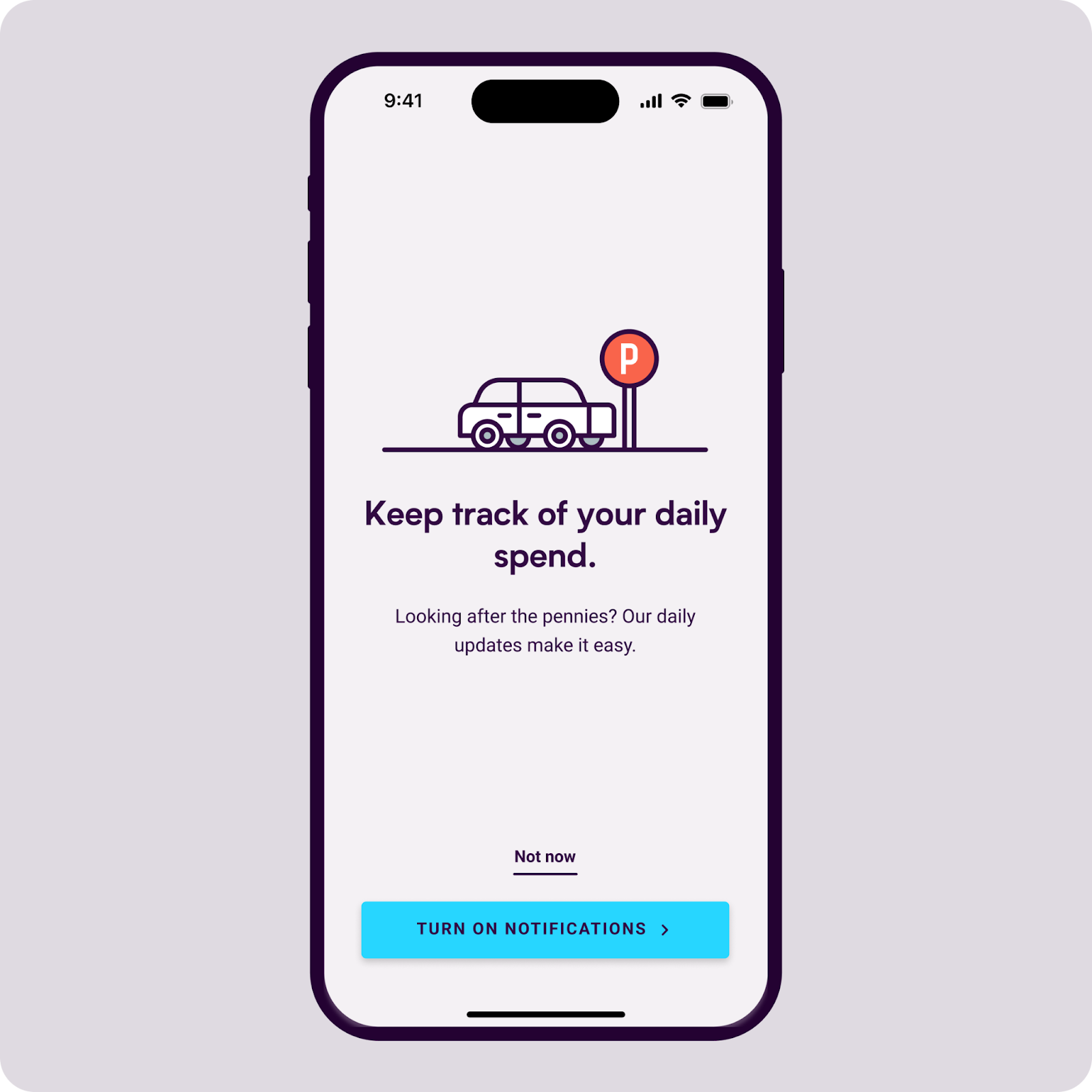 Saving feels better when you can see it happening. Tap ‘Turn on Notifications’ if you’d like daily updates on the cost of your journeys. If you don’t want to do this now, tap ‘Not now’ and set up notifications from the ‘Account’ section of your By Miles app later.